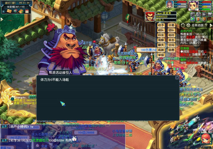 上面这位玩家没想到自己薅帮战羊毛的时候薅过头了,上面这位玩家在进入帮战场景前直接将体力给清空了。现在因为体力为0的方式不能入场,不过上面这位玩家现在还有机会,因为现在才8点11分,还有好几次恢复体力的机会,还是能够在8:30之前入场的。